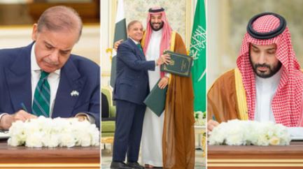 पाकिस्तान ने सऊदी अरब के साथ एक रक्षा समझौता किया है जिसमें कहा गया है कि इनमें से किसी भी देश के विरुद्ध हमला दोनों देशों के खिलाफ हमला माना जाएगा। रियाद दौरे पर गए पाकिस्तान के पीएम शहबाज़ शरीफ और सऊदी अरब के क्राउन प्रिंस मोहम्मद बिन सलमान ने इस साझा समझौते पर हस्ताक्षर किए।