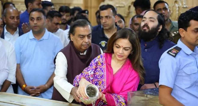 नए साल पर ज्योतिर्लिंग के दर्शन करने पहुंचा अंबानी परिवार