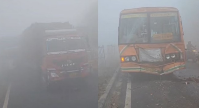 कोहरे का कहर: बरेली में हाईवे पर रोडवेज बस समेत 20 वाहन टकराए, 24 लोग घायल