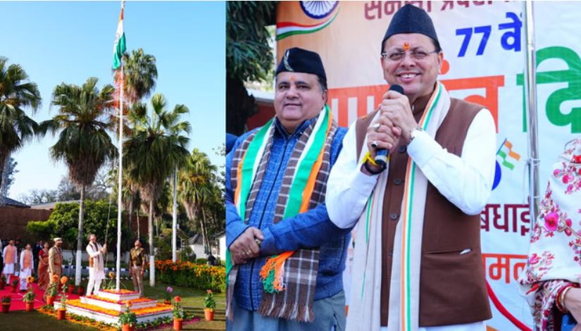 सीएम पुष्कर सिंह धामी ने 77वें गणतंत्र दिवस के अवसर पर मुख्यमंत्री आवास में राष्ट्रीय ध्वज फहराया। इस अवसर पर उन्होंने सभी को संविधान की उद्देशिका की शपथ भी दिलाई। इसके साथ ही उन्होंने प्रदेशवासियों को गणतंत्र दिवस की शुभकामनाएं दीं।