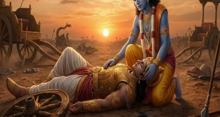 जब अर्जुन ने विजय के बाद पूछा कि माधव आप इतने दुखी क्यों हैं? तब कृष्ण ने भारी मन से कहा – ” पार्थ आज युद्ध केवल एक योद्धा ने नहीं हारा, बल्कि इस संसार ने अपना सबसे बड़ा दानी खो दिया है। कर्ण का शरीर भले ही अधर्म की ओर था, लेकिन उसका चरित्र गंगा की तरह पवित्र था।”
